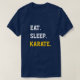 a bold statement that reflects the dedication of a martial arts enthusiast. The phrase "EAT. SLEEP. KARATE." is printed in large, block letters with the word "KARATE" highlighted in a contrasting yellow color. This straightforward design captures the essence of a disciplined lifestyle focused on martial arts training.