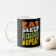 Eat Sleep Pickleball Repeat" mug, the prefect gift for pickleball enthusiasts who live and breathe the game! The mug is designed to showcase your love for pickleball. The vibrant design boldly declares your dedication to the sport with the playful slogan "Eat Sleep Pickleball Repeat."