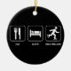 Lightweight, smooth, pure white ornament with nice sheen. Perfect size to be seen from across the room ... and to attract closer inspection! Price was great for ordering enough for the whole family! Clear, bold black design just as requested. Matches the order exactly. Just so nice!