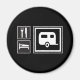 Love roughin' it in your R.V.? Black, white and grey colored icon style pictures of amenities seen on highway road signs. A small food service symbol for eating, a motel or hotel lodging symbol for sleeping, and a HUGE rv trailer icon to show your love of camping! Get out on the road in your home away from home (on wheels) or get this for the avid roadtripper.