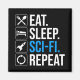 Eat. Sleep. Sci-Fi. Repeat. Funny sci-fi lover gift idea for a man, woman, teens or kids who love science fiction, outer space, rocket ships and exploring the universe, and is a scifi geek or nerd. Do you love science fiction books, sci-fi tv shows or sci-fi movies? If you’re a sci-fi fan, and have a sense of humor, then this design is perfect for you! Great to wear to a science fiction convention.