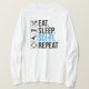 Eat. Sleep. Sci-Fi. Repeat. Funny sci-fi lover gift idea for a man, woman, teens or kids who love science fiction, outer space, rocket ships and exploring the universe, and is a scifi geek or nerd. Do you love science fiction books, sci-fi tv shows or sci-fi movies? If you’re a sci-fi fan, and have a sense of humor, then this design is perfect for you! Great to wear to a science fiction convention.