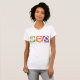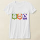 My overall review is that the T-shirt is nice, it fits true to size however the font is significantly smaller than advertised and you can't read it. The printing is unreadable and there is a strain to read it. It does not look like the advertised product. Maybe the shirt color is darker or a larger more visible font should have been used. Photos with and without flash and font is barely legible.