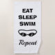 Eat sleep swim repeat funny goggles beach towel. Unique Holiday gift ideas for men, women and kids. Customizable background color. Extra large size for beach or pool. Create your own cool towels for best friends, retiree, retired person, pensioner, family, husband, wife, co worker, colleague, fun boss, employee, mom, dad, sister, brother, aunt, uncle, grandpa, grandma, manager, teacher, nurse, coach, teammate, office worker, swimmer, traveller, son , daughter, teenager, vacationer, wedding couple, newly weds, newlyweds, bride and groom, mr and mrs, honeymooners etc. Humorous quote.