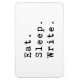 Simple typewritten eat, sleep, and write statement. You can change the background color.