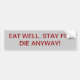 EAT WELL, STAY FIT, DIE ANYWAY! BUMPER STICKER
