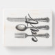 "EAT" Elegant flatware and the word "eat" in cursive" make up this fun, black and white, vintage looking, wooden box sign by Monkey Business Graphic Design for Studio 8974, 2019. This will be the PERFECT accent to your kitchen or dining room and is transitional enough to go with ANY decor style from Victorian to French Country to Mid-Century Modern to Boho Chic and anything in-between.