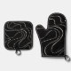 Ebb and Flow 2 - Black on White Oven Mitt & Pot Holder Set