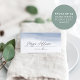 Folded place cards or escort cards match our Ebb Tide event collection and feature a sheer watercolor wash background in pale blue with spaces for the guest's name and table number.