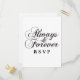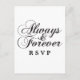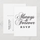 Trendy and chic Always and Forever Wedding Response Postcard featuring a beautiful handwritten typography text design in black and white. This simple and elegant RSVP card sets the tone for a classy and romantic wedding and is easy to customize with your wedding details. Click "Customize It" to find more personalization options. Background color can be changed to any color you would like.