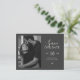 This modern minimalist save the date postcard with couple photo, features a contemporary set of ivory fonts against a dark grey black background. Typographically stylish and elegant, this card is perfect for the modern and stylish couple.