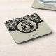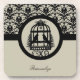 Protect counter and table tops with this alluring coaster design featuring a damask edging with two lovebirds inside a birdcage in ebony black. Customizable text allows you to alter fonts, change text colors and sizes as you wish. Personalize for yourself or makes a great gift.