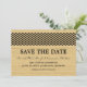 Modern and trendy Rustic Chevron Save the Date Announcement featuring a digital art printed woodgrain texture background and a zig zag pattern of black chevron stripes. This design is perfect for announcing a rustic yet elegant wedding. Easy to customize, simply add your wedding details. Click on "Customize It" to find more personalization options.