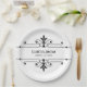 Simple and elegant Fancy Ornamental Wedding Paper Plates in black and white featuring a sophisticated art deco style ornamental flourish border. Easy to customize, simply add your wedding details in the text fields provided. Click "Customize It" to find more personalization options.