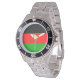 Has heft and feel of expensive stainless steel quartz watches. Good band with safety catch. I removed links, which is easy because engraved arrows show direction to push the linking pins. As always by this seller, the image (a railroad logo) is a perfect reproduction of my emailed image, and is precisely spaced and aligned.