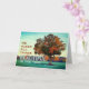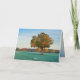 Inspirational quote custom greeting card depicts a beautiful autumn nature photograph including trees with fall leaves, blue skies and a green grass field. It features Bible Verse Ecclesiastes 3:11 , "He makes all things beautiful in his time."