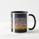 This two-tone mug features a brusher font with white letters gold outline displaying the "Ecclesiastes 4:10 KJV" bible scripture verse over a background picture showcasing dark silhouette images of people standing at the rails of a ocean pier under an abstract colored sky with a multi colored style. This verse is referencing the Book Of Ecclesiastes 4th chapter showing the 10th verse in this bible scripture quote theme from the King James bible. The rim & handle are glazed in matching colors available in 11-ounce or 15-ounce sizes microwave and dishwasher safe ceramic construction.