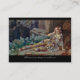 Vintage fine art by Talbot Hughes. Young girl resting by a cave with her hand by her ear listening.