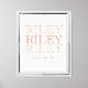 Ivory white canvas with triple horizontal name in all-caps monoline. Center line features bold dusty clay for contrast. A script phrase, “Uniquely Me,” rests beneath, combining modern repetition and soft lettering in a clean wall art layout.