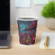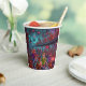 This paper cup design evokes the eerie atmosphere of a haunted toy factory. The scene depicts the Scooby gang facing various spooky challenges simultaneously. Scooby and Shaggy's terrified expressions are prominent as they navigate a possessed conveyor belt, pursued by levitating teddy bears with glowing red eyes. In the background, the focused figures of Velma and Fred poring over a blueprint contrast with Daphne's active defense against a group of sinister possessed dolls using her flashlight. The design subtly incorporates the presence of oversized, silent toys and hints at the ghostly laughter of children echoing through the vast factory, creating a truly immersive and spooky experience.