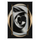 A dance of geometric forms intertwining in metallic curves and circles. The fusion of light and shadow creates depth and motion, evoking the feeling of an abstract portal that resonates with balance, mystery, and timeless sophistication.