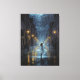A dreamy digital oil-painted night scene where a girl dances joyfully in the rain on a glowing city street, lights reflecting off the wet pavement in a dazzling, romantic celebration of freedom and love.