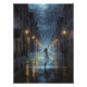 A dreamy digital oil-painted night scene where a girl dances joyfully in the rain on a glowing city street, lights reflecting off the wet pavement in a dazzling, romantic celebration of freedom and love.