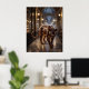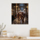 Sleek éclair panther artwork featuring a stealthy feline crafted from glossy pastry textures, dark chocolate glaze, cream-filled contours, caramel accents, and elegant sugar highlights. Prowling through a midnight Paris arcade with marble floors, glass ceilings, glowing lamps, pâtisserie windows, café chairs, rain reflections, and drifting mist, this sophisticated fantasy design feels mysterious and luxurious. Perfect for chic interiors, bakeries, cafés, bedrooms, or collectors of refined animal art.