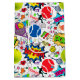 Awesome, unique eclectic tennis pattern with a mix of tennis elements and bright colours on white background.