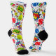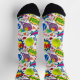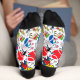 This fun Halloween socks are bright and colorful. The small print is crisp and shows the fun details. The softness of the socks feels nice on my feet and ankles. .