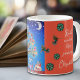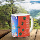 Intricately designed with a lively mix of red, pink, and orange flowers, accompanied by charming birds, bees, and a joyful family frolicking beneath the celestial canopy, this mug is a celebration of life's boundless beauty.