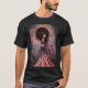My 11 yo wore adult XL (5’7” 165#). The 8yo is small framed. She wore adult small and tied it in the back. Grandma wore adult large with long sleeve shirt underneath. Tall girl adult medium. Dark haired male adult large. Good quality dark Heather gray, Gildan brand shirt. -it was next up from basic choice and cost about $20 per shirt. Not too thick or thin. Washed and dried well, no major shrinkage. Not see-through. Can wear a bra under it fine. Screen print is just as shown and well done, front and back.