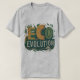 Eco Evolution t-shirt design features the phrase "Eco Evolution" in vibrant, multi-colored lettering. The design incorporates nature-inspired elements like leaves, flowers, and animals, symbolizing the interconnectedness of all living things and the importance of preserving our planet. The overall aesthetic is playful and colorful, reflecting the optimism and hope associated with environmental sustainability.