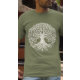 A powerful eco-friendly tree of life symbol makes a simple strong statement on this graphic tshirt. A symbol of strength, wisdom and connectedness of life, this design makes a nice additional to your tshirt collection. Shown here in light ecru beige on an olive green shirt, the look is organic and earth friendly. This shirt makes a nice gift for your favorite tree hugger. It's also a good choice to promote Earth Day.