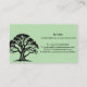 A business card for "Eco-Growth Consulting" with a nature-inspired design featuring green and yellow watercolor, tree branches, and a large tree silhouette, along with contact information for a sustainability and ESG consultant.