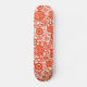 A skateboard with interesting and diverse abstract design consisting of various circular shapes in different styles connected by thin lines like a network or ecosystem.