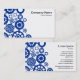 A business card template with an original abstract network motif on the left. Company name and business type on the front with Name, address telephony, email and web details on the back.
