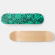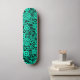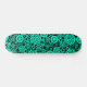 A skateboard with interesting and diverse abstract design consisting of various circular shapes in different styles connected by thin lines like a network or ecosystem.