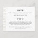 The ideal modern addition to a formal wedding invitation, this combination reply and more information enclosure card features elegant typography and a subtle and geometric border graphic inspired by mud cloth textile design. Easy to edit text gives you the flexibility to send guests any information they may need for an online rsvp, wedding website and more, all on one convenient and paper saving card.