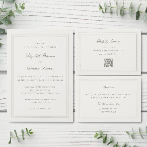 Ecru Formal Romance Modern Classic Triple Wedding RSVP Card