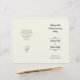Plain ecru wedding program template to be folded in half after purchase. Little embellishments, such as line dividers for the names, and cute entwined hearts on the back, give this simple program an enchanting touch. Casual printed font style is used for the "order of ceremony" and "wedding party", as well as for the message from the couple on the back. Bold script is used for the title and names of the couple.