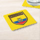 The national flag of Ecuador is infused into a faux gold shield shape with the country name added above the flag.