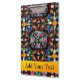 Vibrant, multi-color graphic designed home decor and gift items using a stain glass art filter.