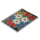 An image of a floral pattern with a needlework look of Edelweiss white Alpine flowers of Europe on your product. Blue, red, yellow, and white colors. Leontopodium alpinum of Switzerland, Germany, and Austria.