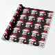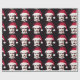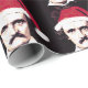 Goth Christmas wrapping paper featuring a repeating pattern of a somber-looking Edgar Allan Poe wearing a festive Santa hat. Use the menu on the right to choose from a range of different paper options.