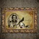 Moody and dark Victorian Edgar Allen Poe ephemera including portrait in ornate engraved oval frame, raven perched on a skull, handwritten verse in Poe's hand of The Raven, Annabel Lee sheet music cover and spray of old roses on grungy distressed sepia parchment. Suitable for decoupage art.