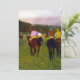 Card featuring Edgar Degas’ oil painting Race Horses at Longchamp (1871-4). A group of jockeys sit on their horses at the Longchamp racetrack in Paris. A fabulous gift for horse lovers and fans of Impressionism!