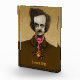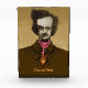 Terrified Edgar Allan Poe watching a gold bug climping on his tie. Colored ink pen sketch. Custom text.