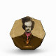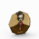 Terrified Edgar Allan Poe watching a gold bug climping on his tie. Colored ink pen sketch. Custom text.