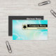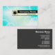 A business card design with a label like panel for company details and a logo or monogram. Company details on the front with name and contact details on the back. Suitable for a variety of businesses. The asterisk logo can be used as a decorative feature or replaced with a different logo image.